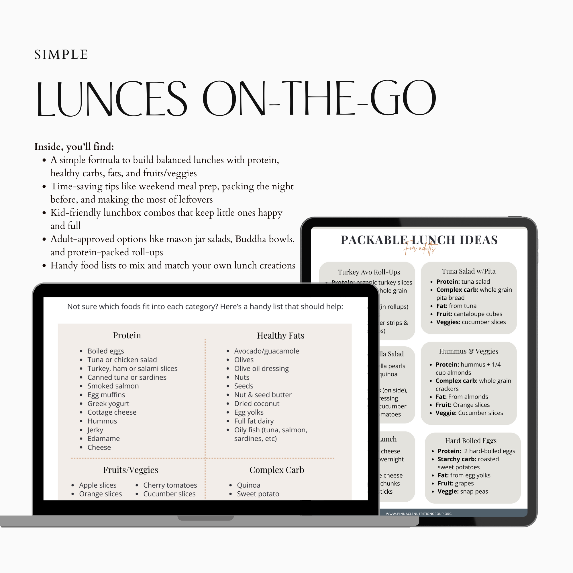 Make packing healthy lunches simple and stress-free! This eBook gives you easy, balanced lunch formulas and over a dozen kid- and adult-friendly ideas that are nutritious, delicious, and ready to grab-and-go.