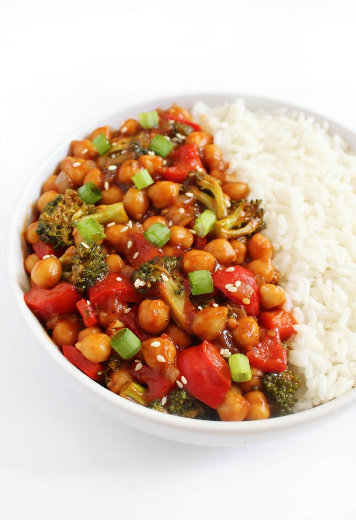 For the best texture, sauté chickpeas until slightly crisp before adding veggies. Toss everything in the sauce just before serving